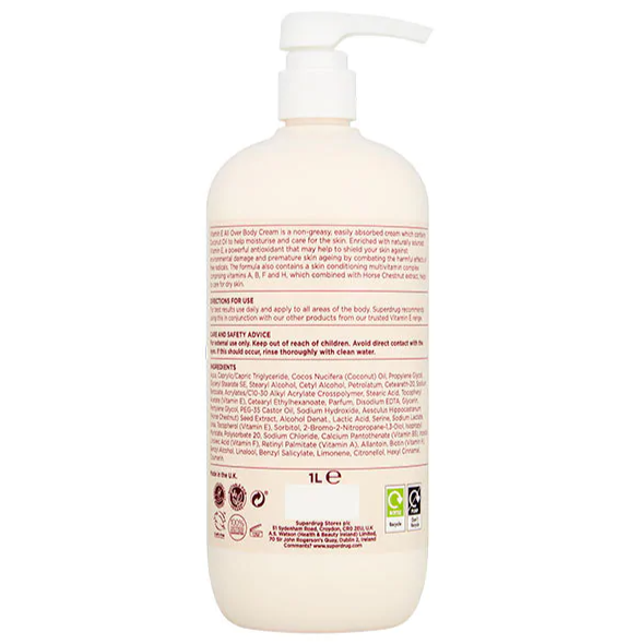 ✔ Kem dưỡng thể Superdrug Vitamin E giúp cấp ẩm sâu, làm mềm và phục hồi làn da khô ráp.