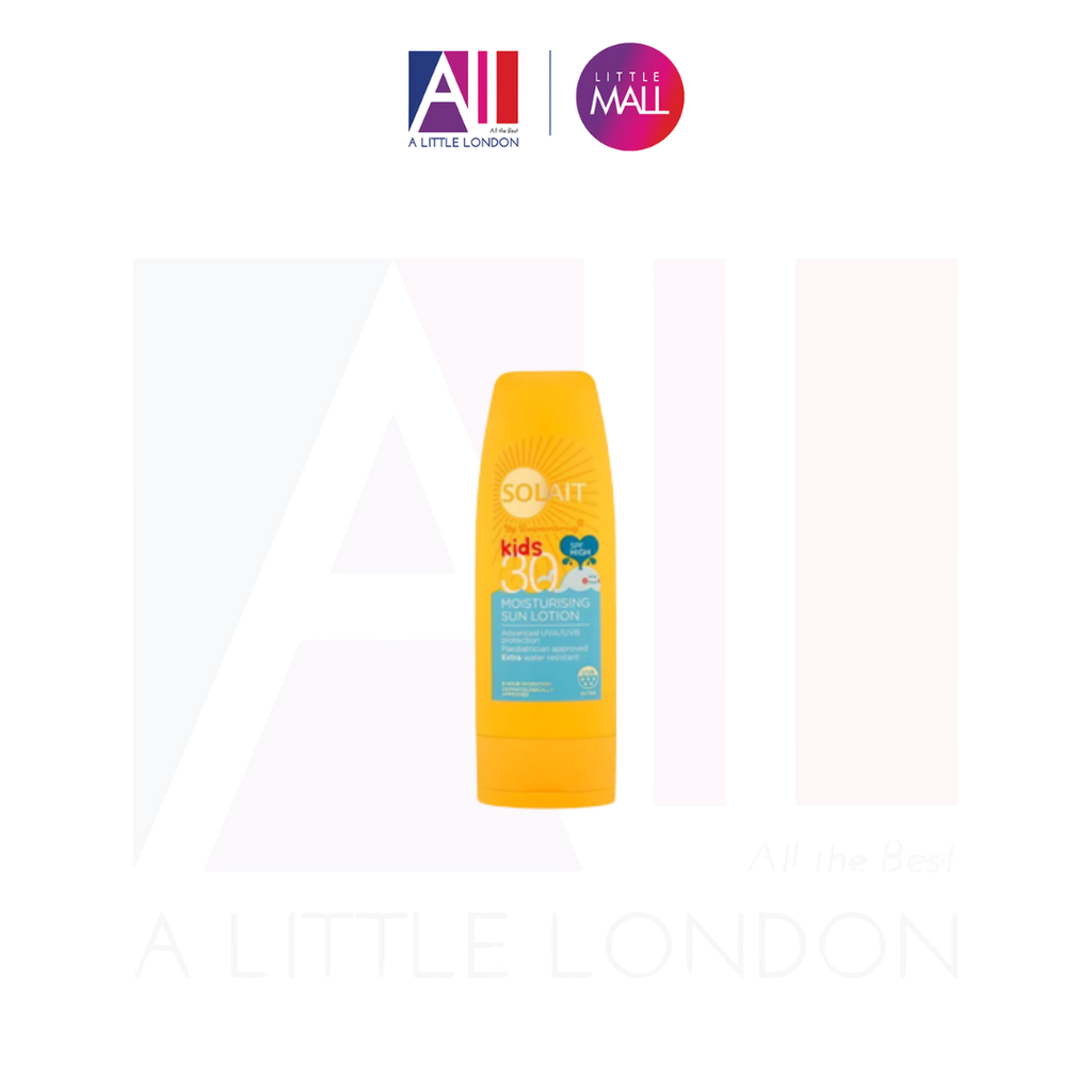 Solait SPF 30+ Kids Moisturizing Sun Lotion được pha chế đặc biệt với sự kết hợp của kem chống nắng phổ rộng để giúp bảo vệ làn da mỏng manh của trẻ. Tia UVA (lão hóa) và UVB (đốt cháy). Với khả năng chống tia UVA năm sao, nó giúp bảo vệ da khỏi tác hại của ánh nắng mặt trời. Làm giàu với Radicare, một phức hợp chống oxy hóa độc đáo được chứng minh để tăng cường khả năng chống chọi của da với ánh nắng mặt trời bằng cách chống lại các gốc tự do. Công thức chống nước bổ sung với Aquarich cũng cung cấp hydrat hóa 24 giờ để giữ cho da mềm mại và dẻo dai khi tiếp xúc với ánh nắng mặt trời.