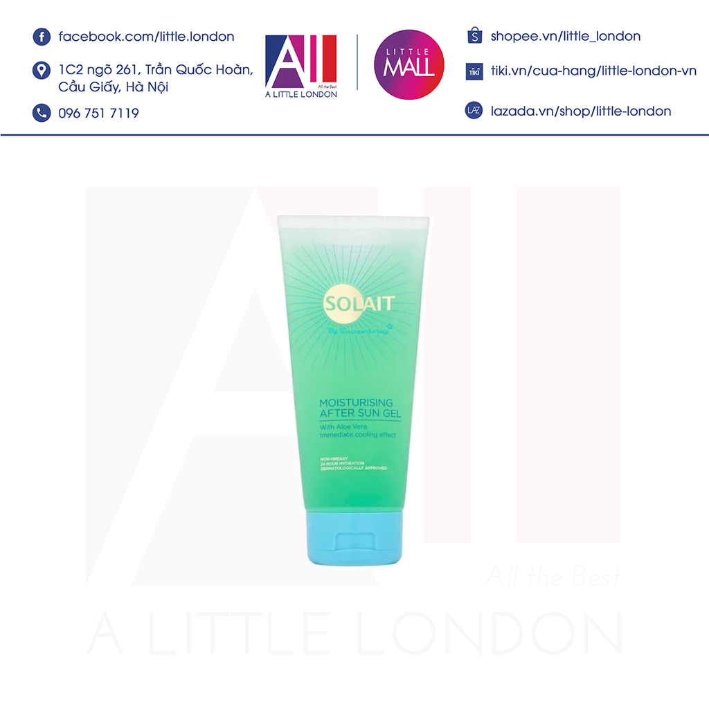 Gel dưỡng ẩm da sau khi đi nắng Solait Moisturizing After Sun Gel được đặc chế để ngay lập tức có thể làm mát, làm dịu và làm sảng khoái làn da khi tiếp xúc với ánh nắng mặt trời.