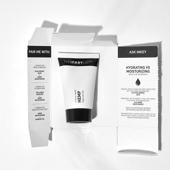 Kem dưỡng The INKEY List Hemp Moisturiser làm dịu làn da kích ứng và mệt mỏi, bổ sung độ ẩm, giữ cho da luôn tươi sáng, trẻ trung nhất. Thành phần chính dầu gai dầu chứa hàm lượng cao axit béo omega-3 và omega-6, giúp giữ ẩm và nuôi dưỡng làn da. Sản phẩm hoàn hảo cho làn da khô, bong tróc và cần tăng cường nuôi dưỡng, đặc biệt với những người thường xuyên phải tiếp xúc với ánh nắng hoặc không khí điều hòa. Kem dưỡng còn được bổ sung chiết xuất trà xanh, một chất chống oxy hóa giúp bảo vệ da khỏi các tác nhân gây hại từ môi trường.