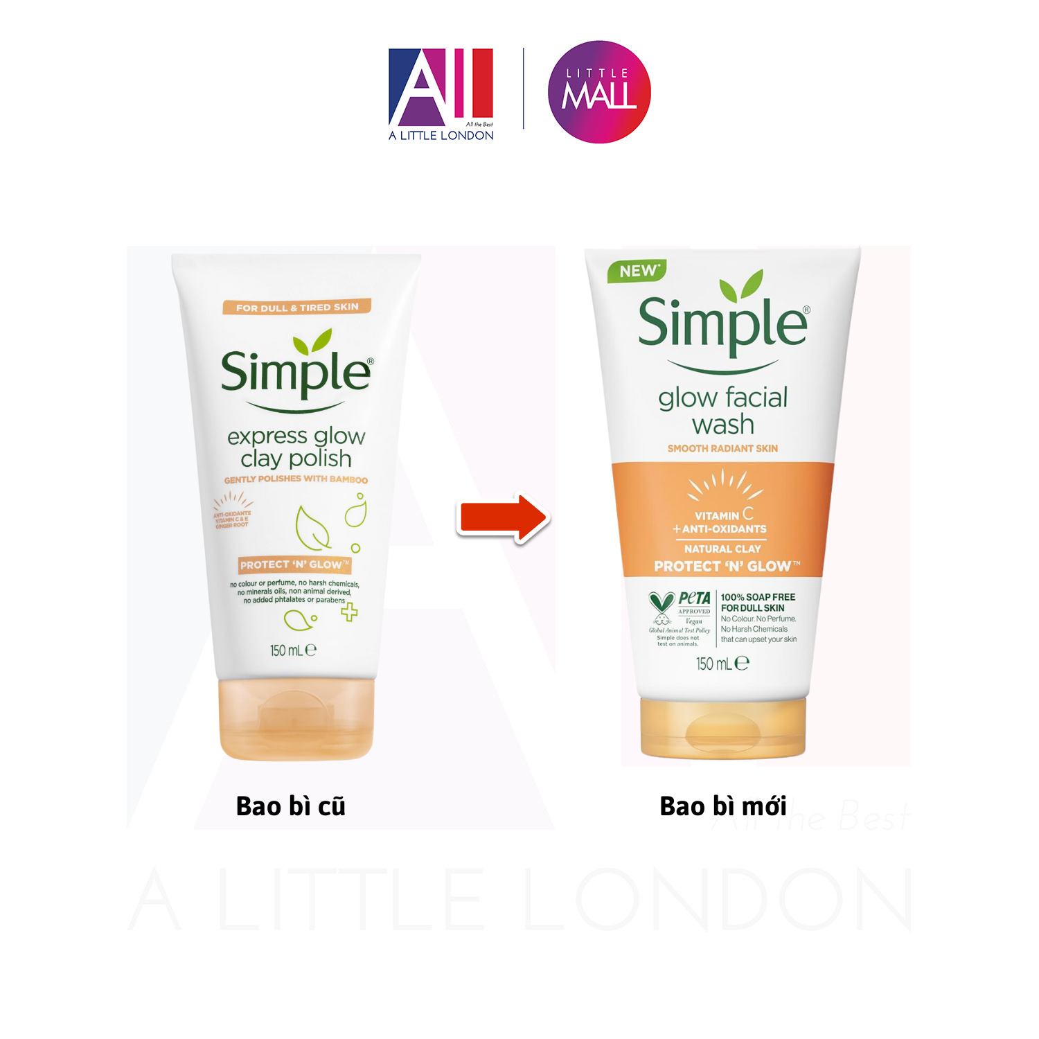 Sữa rửa mặt Simple Protect N Glow Express Glow Clay Polish làm mịn, sáng da và phục hồi làn da xỉn màu với chiết xuất từ tre tự nhiên chỉ trong 1 phút. Đúng vậy, 60 giây là tất cả những gì công nghệ tiên tiến Protect N Glow Express Glow cần để quét sạch các tế bào chết và làm sáng làn da xỉn màu. Việc tiếp xúc quá nhiều với tia UV, ô nhiễm và ánh sáng xanh từ các thiết bị điện tử cũng có thể khiến làn da trở nên nhạy cảm. Simple Protect N Glow Express Glow Clay Polish, với các loại đất sét tự nhiên, giúp hút sạch các chất ô nhiễm, bụi bẩn và da chết. Vitamin C & E và chiết xuất rễ củ gừng hữu cơ giúp làm sáng, cho làn da rạng rỡ tự nhiên.