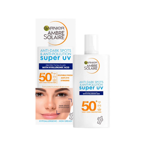 Kem chống nắng dạng lỏng, siêu nhẹ, SPF 50+, chống UVA/UVB và ô nhiễm.