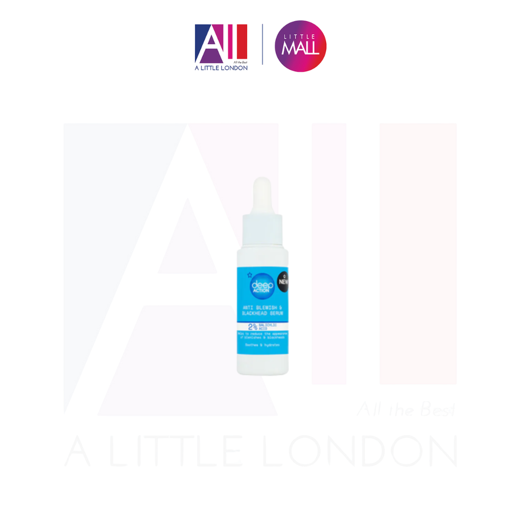 Deep Action Anti Blackhead & Blemish Serum, nhanh chóng hấp thụ vào da giúp thông thoáng lỗ chân lông và giảm sự xuất hiện của mụn cám và mụn đầu đen chỉ sau một tuần. Huyết thanh mạnh mẽ này với công thức đặc biệt với sự kết hợp của Axit Salicylic và Axit Lactic cũng như hỗn hợp các chiết xuất tự nhiên như Tulsi, Lady's Thistle và Green Seaweed giúp thúc đẩy làn da mềm mại, tươi sáng và đều màu hơn mà không làm khô da. Sau hai tuần, các lỗ chân lông xuất hiện tinh tế trong khi huyết thanh hoạt động để giúp ngăn ngừa các vết thâm.