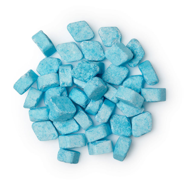 Dicalcium Phosphate Anhydrous, Sodium Bicarbonate, Silica, Citric Acid, Glycerine, Sorbitol, Xylitol, Malic Acid, Stevia (Stevia Rebaudiana), Menthol Crystals, Juniperberry Oil (Juniperus communis), Coriander Seed Oil (Coriandrum sativum), Lime Oil (Citrus aurantifolia), English Angelica Root Oil (Angelica sinensis), Elderflower Infusion (Sambucus Nigra Flower Extract), Caraway Oil (Carum Carvi), Titanium Dioxide, Synthetic Fluorphlogopite, *Cinnamal, *Citral, *Eugenol, *Limonene, *Linalool, Flavor (Fragrance), Blue 1 Lake .